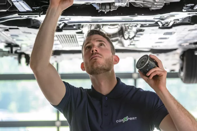 carXpert-Werkstätten führen den Ölwechsel durch, ersetzen systematisch den Ölfilter und füllen neues Öl ein, wobei sie die vom Hersteller vorgeschriebene Qualität und Menge einhalten.