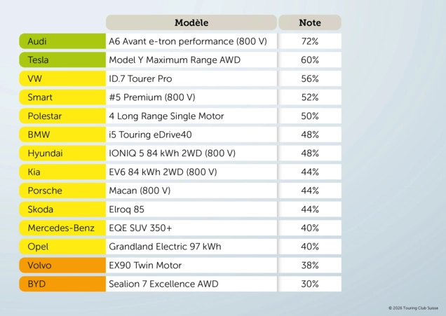 Le comparatif souligne enfin que les meilleurs résultats en hiver ne sont pas automatiquement liés au positionnement d’un véhicule. Plusieurs modèles figurant dans le haut du classement combinent une consommation maîtrisée et une recharge efficace, alors que d’autres véhicules plus grands et plus lourds se retrouvent pénalisés par une efficience insuffisante, malgré une batterie de capacité importante.