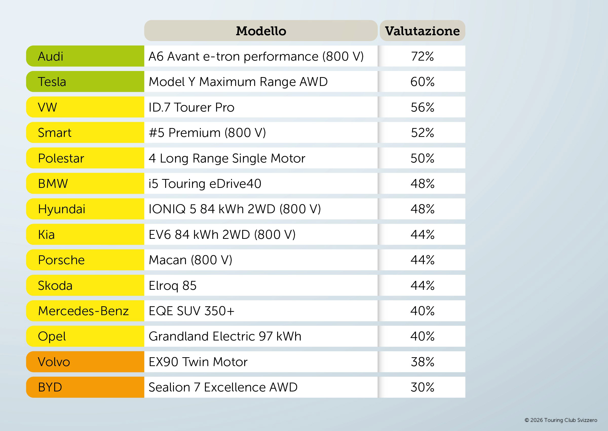 Una classifica che non dipende dal “livello di gamma”